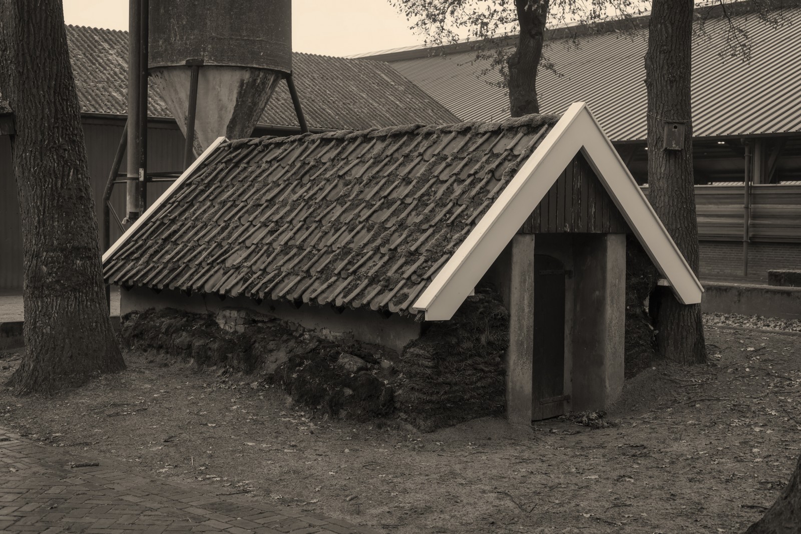De oorspronkelijke 'tuffelkelder lag dieper in de grond, met op het dak plaggen.