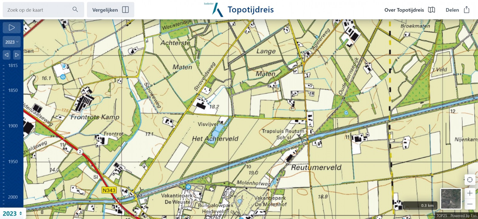 Topotijdreis 2023. Zelfde gebied als voorgaande kaart.