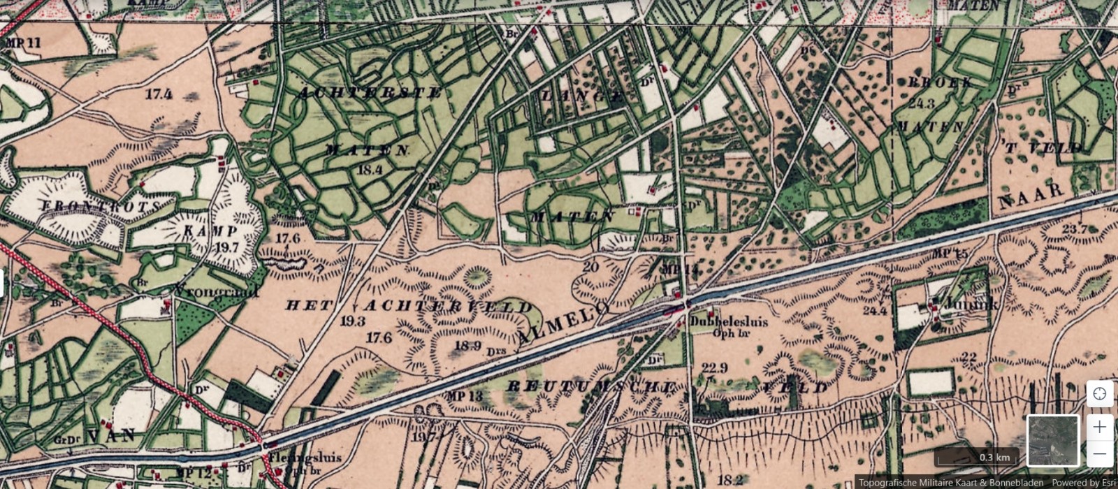 Topotijdreis 1913 Achterveld Reutum. Zie ook de grote aantallen houtwallen.