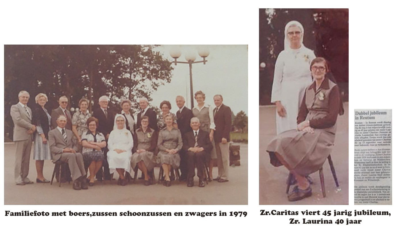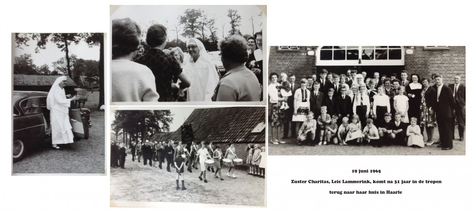 Zuster Charitas, Leis Lammerink, komt na 31 jaren in de missie op 19 juni 1965 voor het eerst weer in haar ouderhuis de Rotger in Haarle waar de familie haar hartelijk ontvangt. Op het erf brengt de St. Jozef muziekvereniging een serenade aan haar. Er worden vele familiefoto’s gemaakt met alle neefjes en nichtjes die inmiddels geboren zijn. Ook de zussen, schoonzussen, broers en zwagers zijn van de partij. Eigenlijk is de gehele buurtschap Haarle uitgelopen om Leis Lammerink hartelijk te groeten. Ze verblijft dan 6 weken in Reutum en omstreken. Ze bezoekt alle broers en zussen en maakt nog beter kennis met alle neefjes en nichtjes. Op 27 november 1965 gaat Zuster Charitas weer terug naar haar missie in Indonesië, het R.K. St. Elisabeth ziekenhuis te Semarang.