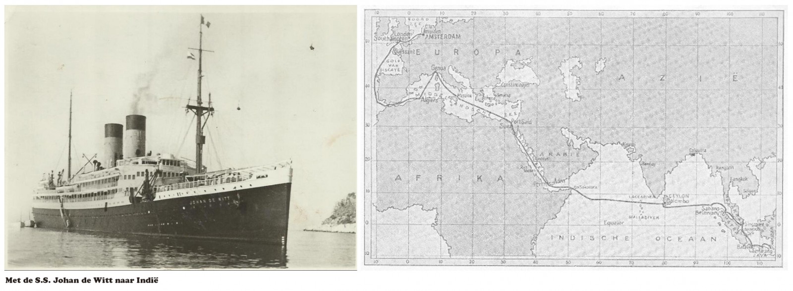 De reis duurt 30 dagen en 16 uren en er wordt meer als 17000 kilometer gevaren. Via de Noordzee vaart de Johan de Wit langs de kust van Portugal om bij Gibraltar de Middellandse zee te doorkruizen. Varend langs de kust van Algiers wordt er op het schip Maleise les gegeven. Ook worden er cabaretuitvoeringen gegeven vooral om de tijd te doden. Ook de indrukken van de jonge militairen moeten een plaats krijgen. Harrie en vele anderen komen zo van het platteland en maken een reis om de halve wereld. De boot vaart richting het Suez kanaal om bij Port Saïd de doorsteek naar de Indische Oceaan te maken. Met de oversteek langs de Malediven en Ceylon (huidig Sri Lanka) komt de Johan de Wit in Nederlands Indië aan in de haven van Tandjung Priok. Vanaf januari 1947 wordt Harrie geplaatst in Batavia. Hij is ingedeeld bij de 7 december C divisie en valt onder de 3HUPvA, de 3de Hulp Verbandplaats Afdeling. Het zijn veel Limburgse jonge militairen waar Harrie mee werkt. Als Hospik doet hij zijn werkzaamheden, vaak met gevaar voor eigen leven. Vele gewonde soldaten moeten opgehaald uit het binnenland van Java. Er heerst nog steeds veel chaos en vele guerrillagroepen opereren vanuit het binnenland.