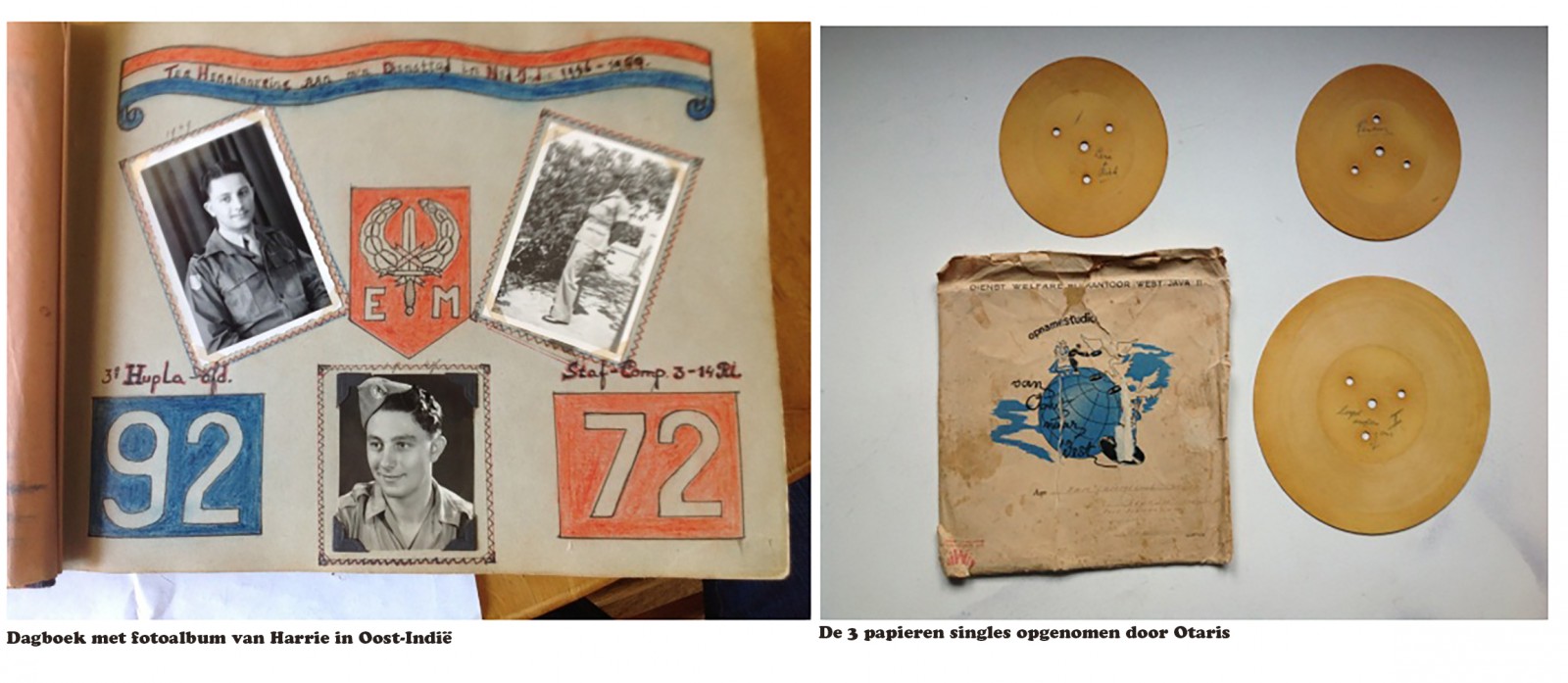 Harrie hield een dagboek bij en een foto herinneringsboek over zijn diensttijd in Oost-Indië. Bijzonder is dat in het dagboek een 3-tal papieren singles zaten met geluidsopnamen. De opnames zijn gemaakt door Otaris van Oost naar West. De militairen konden op die manier een gesproken opname sturen naar de familie , het thuisfront. Ook vanuit Reutum is een gesproken opname van pastoor van Benthem in het voorjaar van 1949 aan Harrie toegezonden. Pastoor van Benthem spreekt dan namens alle parochianen van Reutum en Haarle. Op het eind van de opname wordt door zus Lena en buurmeisje Riek van Sneuman een lied gezongen voor de militairen in Oost-Indië.
