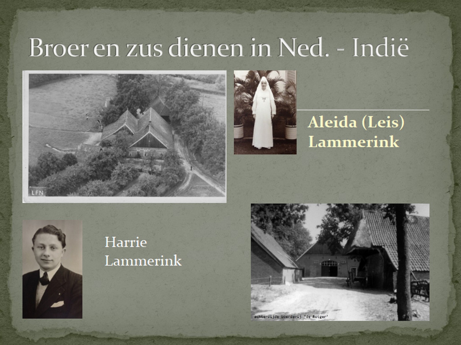 Het is 11 januari 2024 dat ik een presentatie mocht houden voor de senioren van Reutum en Haarle over mijn oom Harrie en tante Aleida (Leis) Lammerink, beiden hebben ze gediend in het verre Nederlands-Indië.